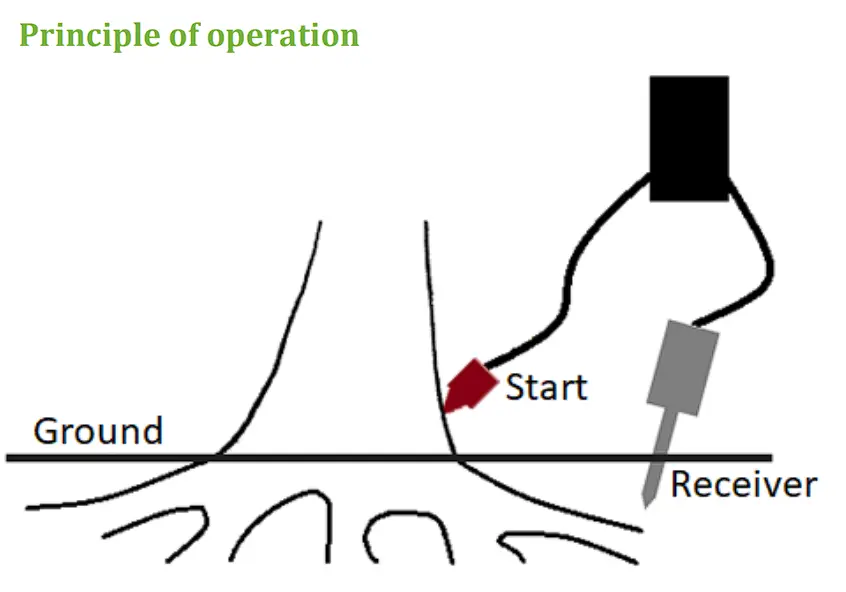 Saat sensor transduser diketuk, gelombang suara bergerak cepat di dalam material kayu tetapi melambat saat di tanah. Waktu rambat gelombang antara sensor transduser dan sensor tanah diukur, dan kecepatannya dihitung. Ketika gelombang suara mencapai sensor tanah, pengukuran waktu berhenti, dan µs yang diukur dikirim ke komputer.