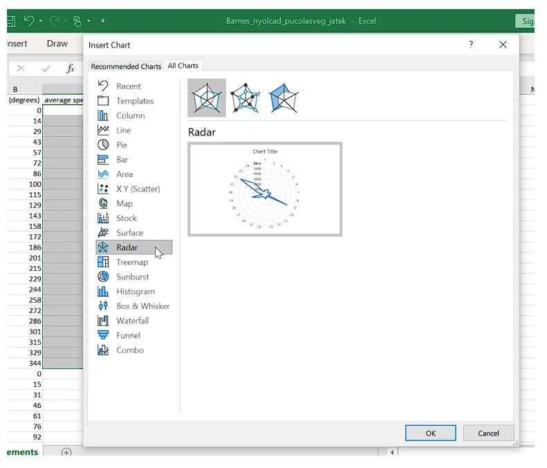 5. Klik bagian All Charts lalu klik Radar