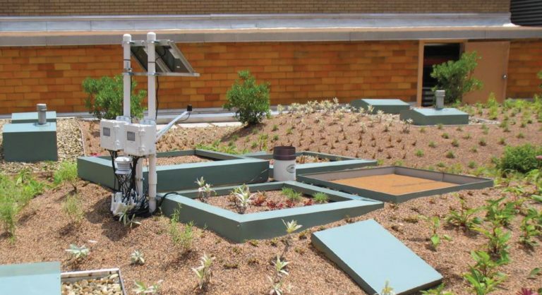 Stasiun cuaca pencatatan data adalah alat yang ideal untuk mendokumentasikan kinerja atap hijau. Stasiun cuaca dapat mengukur parameter cuaca seperti curah hujan, limpasan air badai, suhu, kelembaban relatif, kecepatan angin, radiasi matahari, dan sejumlah parameter non-cuaca (seperti kelembaban tanah) secara terus menerus – katakanlah setiap lima menit, per jam, atau interval lain yang sesuai dengan situasi. Untuk tujuan diskusi ini, “stasiun cuaca” dapat merujuk ke data logger yang mengukur dan menyimpan data dari sensor cuaca. Informasi yang dikumpulkan stasiun cuaca dapat membantu Anda membuat pilihan bijak tentang merancang, menyetel, dan memelihara atap hijau.