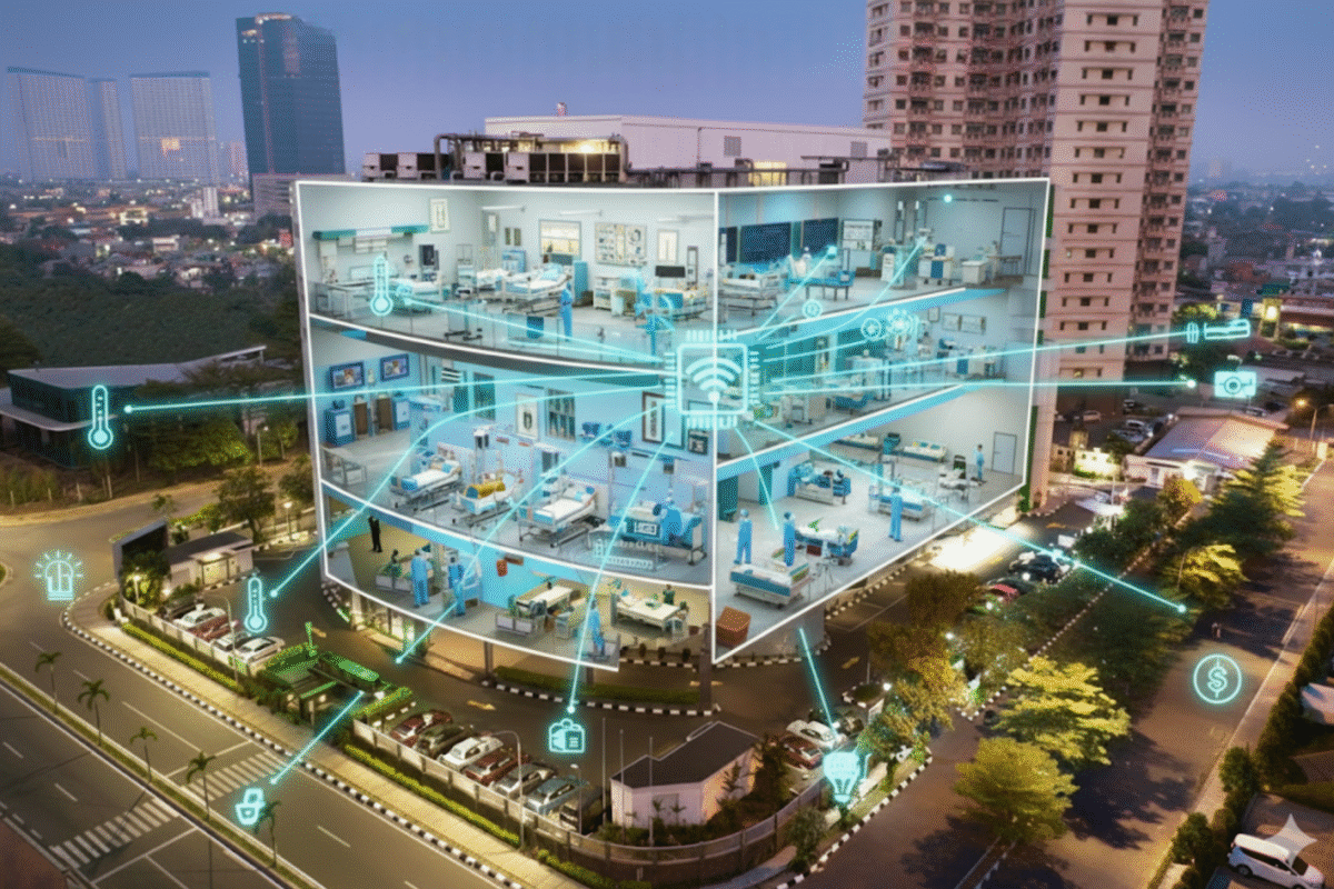Beberapa rumah sakit di Indonesia mulai mengadopsi sistem otomasi gedung untuk meningkatkan efisiensi energi sekaligus kenyamanan pasien. Teknologi ini tidak hanya sebatas pengelolaan listrik dan pendingin ruangan, tetapi juga integrasi sistem keamanan, monitoring kualitas udara, serta manajemen aset medis.