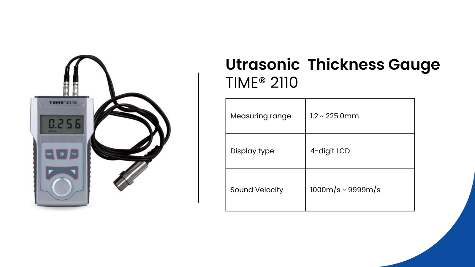 TIME® 2110 adalah ultrasonic thickness gauge dasar dan terjangkau yang dirancang untuk pengujian non-destruktif. Alat ini sangat ringan (dengan berat 140 gram), mudah digunakan, dan sangat akurat.