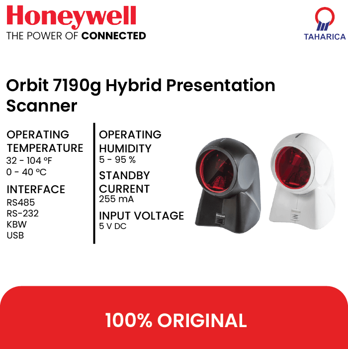 Pemindai Orbit 7190g melanjutkan kinerja pemindaian laser 1D superior yang telah terbukti dari pemindai seri Orbit –: tetapi menambahkan pencitraan area untuk pemindaian tanpa batas kode 1D, 2D, dan PDF digital dalam satu perangkat yang nyaman. Untuk mempercepat checkout ritel, pemindai Orbit 7190g menampilkan desain mode ganda unik yang dioptimalkan untuk kasir dan pelanggan –: memungkinkan pemindaian kode batang produk yang mulus dan pemindaian kode digital dari ponsel cerdas pelanggan.