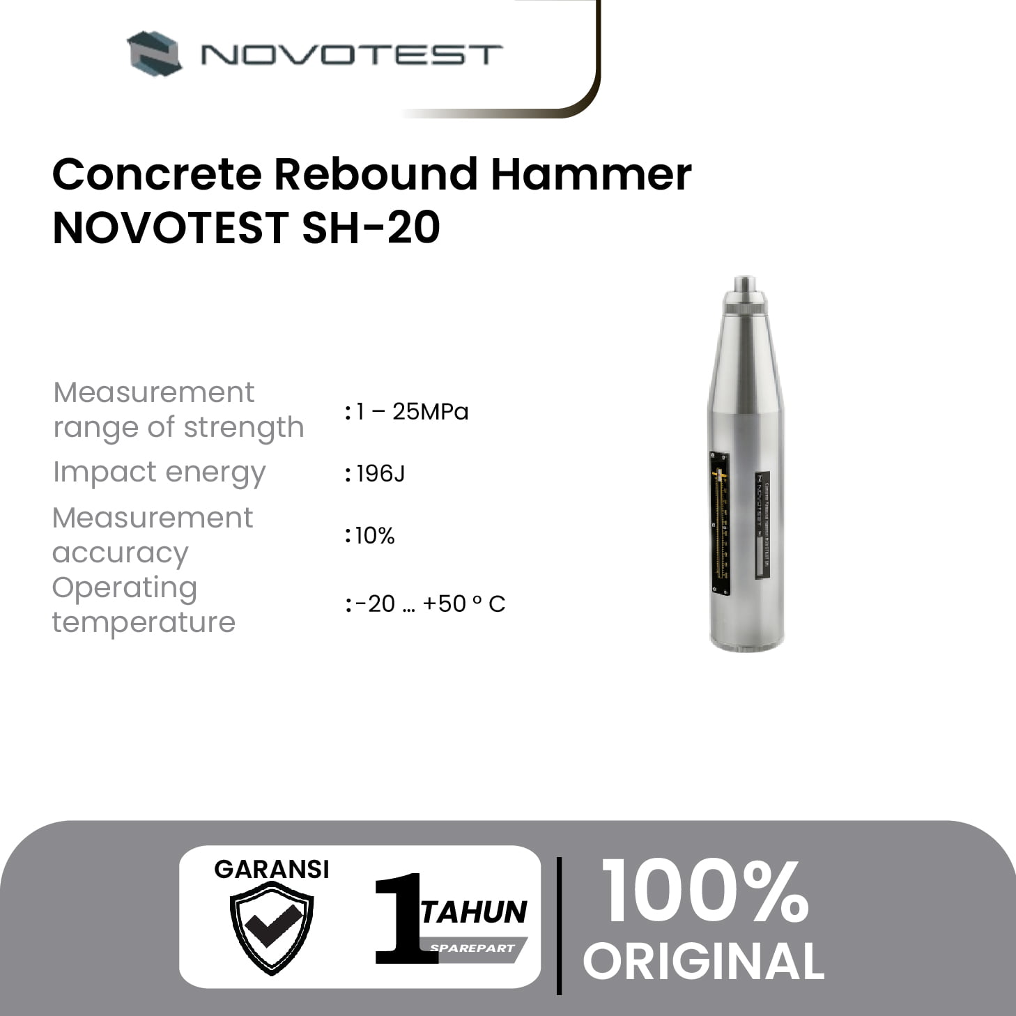 Concrete Rebound Hammer NOVOTEST SH sangat mudah dalam pengoperasiannya, memiliki keandalan desain yang baik dan akurasi pengukuran yang tinggi, sehingga metode ini merupakan metode yang paling umum untuk mengukur kekuatan beton di dunia. Pengujian kekuatan dengan palu pantul beton sesuai dengan ASTM C 805; ASTM D 5873 (untuk batu); DIN 1048, hal. 2; ENV 206; EN 12 504-2; ISO / DIS8045.