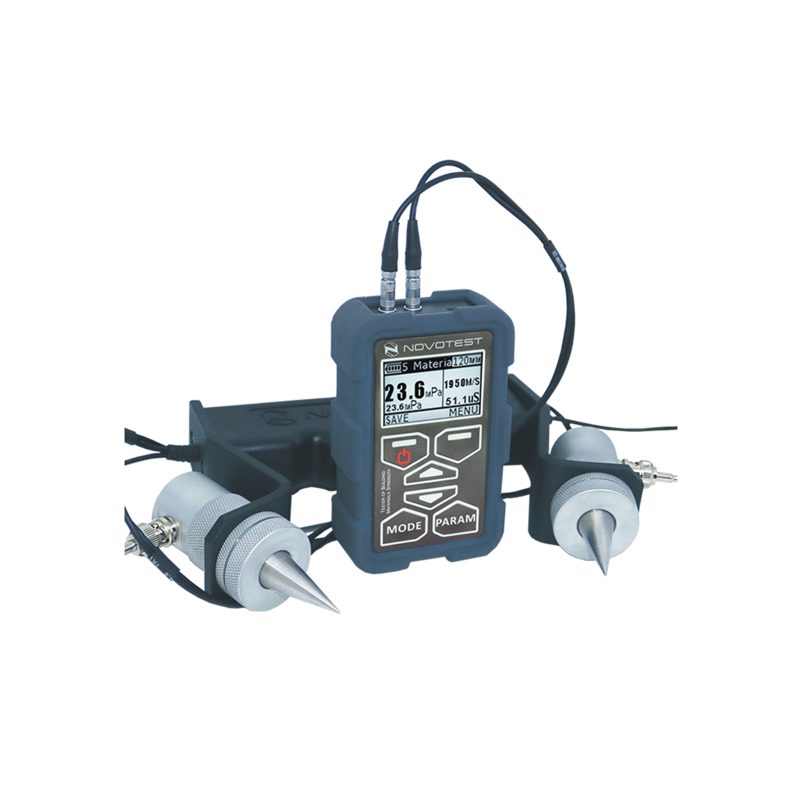Strength Meter NOVOTEST IPSM adalah tester Ultrasonic Pulse Velocity (UPV) untuk menemukan cacat pada produk beton, batu bata dan bahan padat lainnya berdasarkan analisis rambatan gelombang ultrasonik dalam bahan. Dua transduser terhubung ke perangkat (pemancar dan penerima), selama operasi, perangkat mendapatkan waktu perambatan gelombang ultrasonik antara transduser, memiliki basis tetap (jarak antara transduser), perangkat menghitung kecepatan gelombang ultrasonik di bahan, berdasarkan mana dimungkinkan untuk membangun korelasi dengan parameter pengujian. Metode ini memungkinkan pengguna untuk mengevaluasi parameter seperti kekuatan, kepadatan, modulus elastisitas, indeks suara, dan parameter lain yang memiliki korelasi dengan kecepatan rambat ultrasound dalam material. Perangkat memenuhi ASTM C597-16 (Metode Uji Standar untuk Kecepatan Pulsa Melalui Beton).