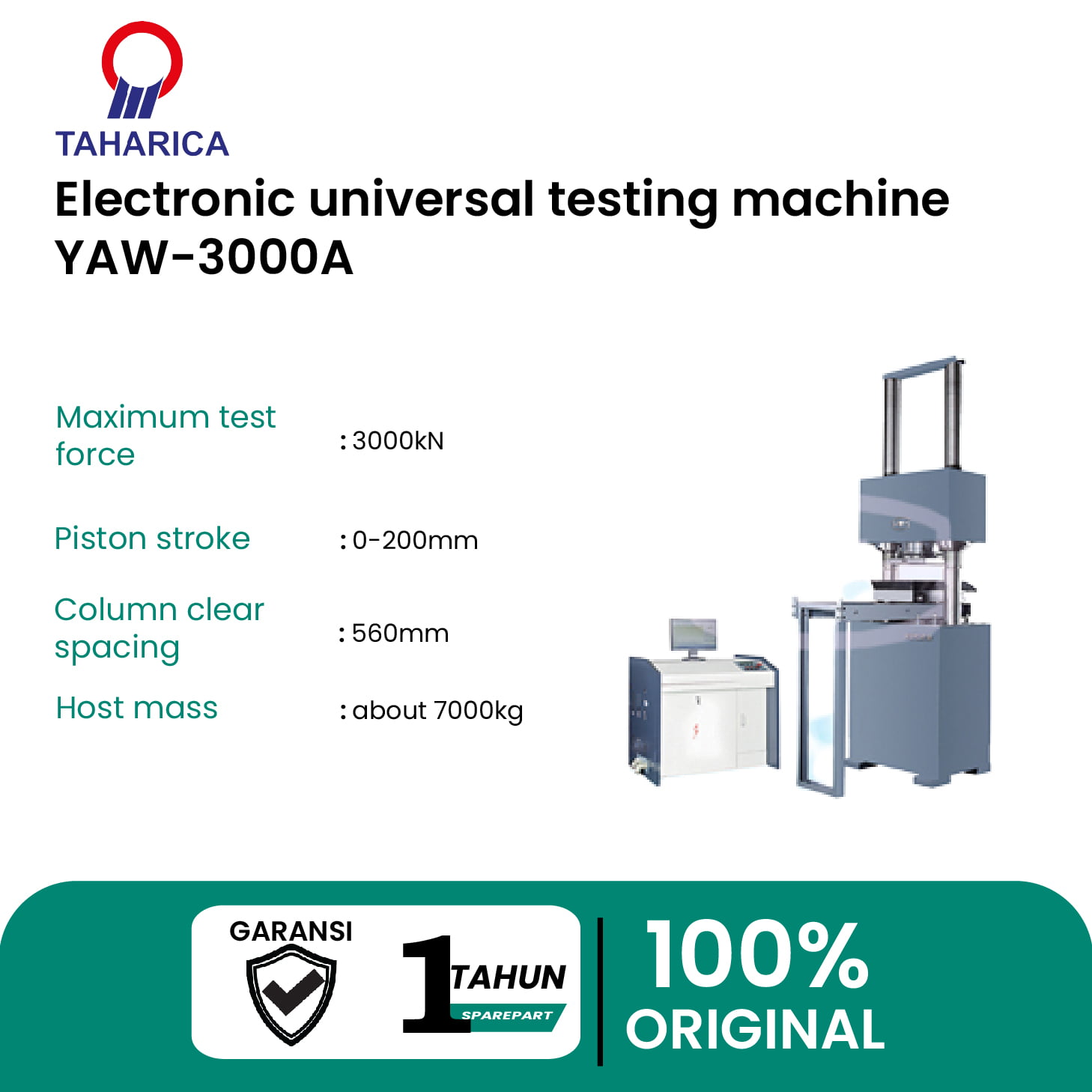 Alat Uji Tekan YAW-3000A Microcomputer Controlled Electro-hydraulic Servo Pressure Testing Machine