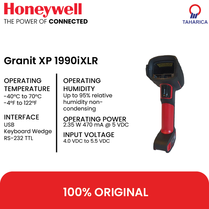 Pemindai Granit™ XP generasi ini terus memperluas kemampuan dan mendefinisikan ulang pemindaian ultra-kasar. Dengan spesifikasi jatuh 10′, Granit™ XP direkayasa untuk terus bekerja setelah dampak jatuh dari dok pemuatan, truk fork, dan truk pengambilan. Uji jatuh 1 m (3,3 kaki) menunjukkan daya tahan jangka panjang dengan benturan dan jatuh setiap hari dari stasiun kerja atau setinggi pinggang.Spesifikasi 7.000 jatuh terbaik di kelasnya membantu memastikan pemindai Granit™ siap bekerja untuk jangka panjang. Dan penyegelan debu dan kelembaban IP67 melindungi kinerja pemindaian di bawah perlakuan yang keras. Model Granit™ 1990iXLR dimulai dengan pemindaian jarak dekat tanpa pengorbanan dan diperluas untuk membaca kode UPC hingga label rak 2 m (6,6 kaki) dan 100 mil (2,54mm) pada 24 m (79 kaki). Dikemas dengan fitur-fitur penting yang dapat diandalkan untuk membidik, laser aimer XLR terlihat dalam berbagai kondisi pencahayaan. Sistem bidikan siang hari menawarkan bidikan akurat di bawah sinar matahari cerah dengan solusi bidikan hijau yang mudah dilihat. Dibuat untuk aplikasi di mana pemindaian kecepatan tinggi jarak jauh diperlukan untuk memaksimalkan produktivitas, dan di mana daya tahan tidak dapat dinegosiasikan untuk membantu menurunkan total biaya kepemilikan, pemindai Granit™ XP 1990iXLR menawarkan solusi optimal.