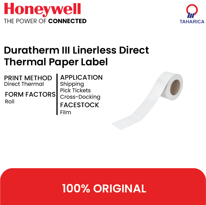 Honeywell menawarkan berbagai macam label dan tag untuk mendukung berbagai teknologi pencetakan dan kebutuhan aplikasi Anda yang berbeda. Label barcode kertas dan sintetis tersedia, untuk digunakan dengan printer transfer termal dan termal langsung. Kami memperlakukan Duratherm kami: label kertas termal langsung dengan lapisan peka panas dan mencitrakannya melalui kontak langsung dengan kepala cetak. Kami juga menawarkan produk termal langsung dengan lapisan atas. Ini memberikan peningkatan daya tahan untuk aplikasi Anda di mana kelembaban tinggi dan abrasi permukaan menjadi perhatian.