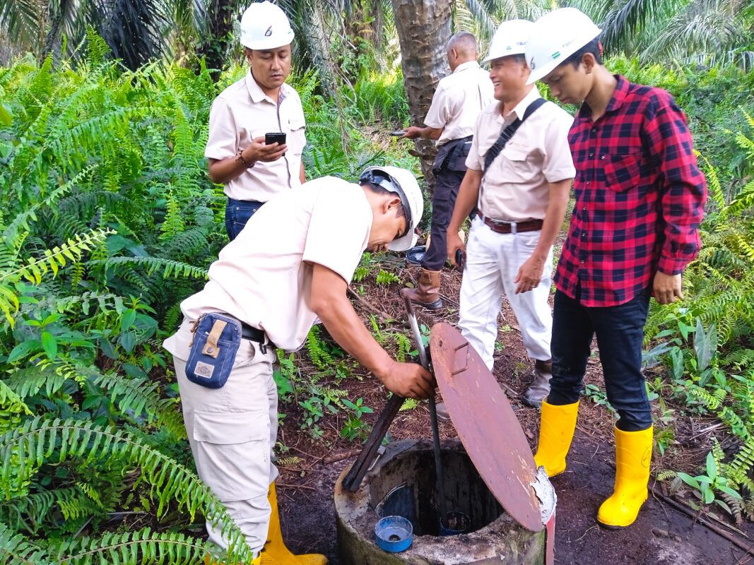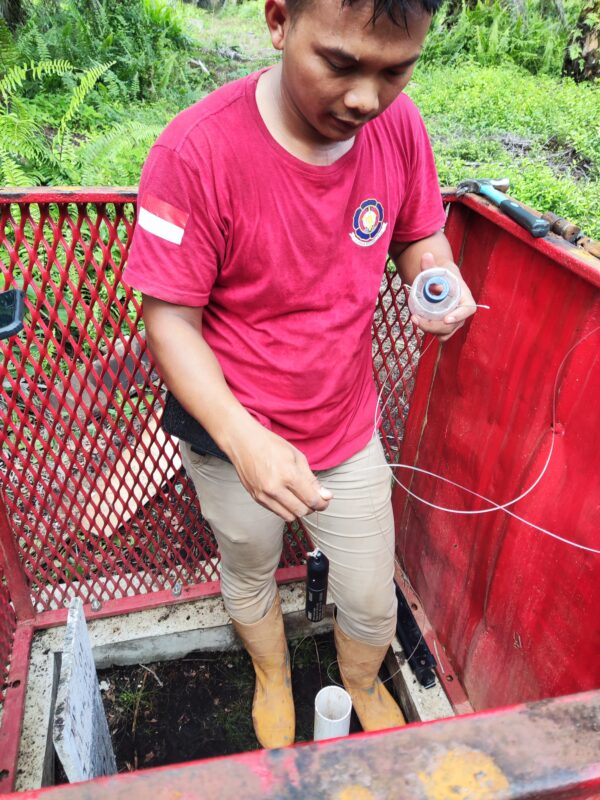Kegiatan instalasi water level di PT Marita Makmur Jaya di lakukan langsung di area perkebunan. Tim teknisi bersama pihak perusahaan melakukan pengecekan sumur pantau, pemasangan sensor ketinggian air, serta memastikan perangkat terpasang dengan baik. Proses ini di lakukan dengan perlengkapan keselamatan kerja lengkap dan melibatkan koordinasi tim secara langsung di lapangan untuk memastikan alat berfungsi optimal dalam memantau ketinggian air.