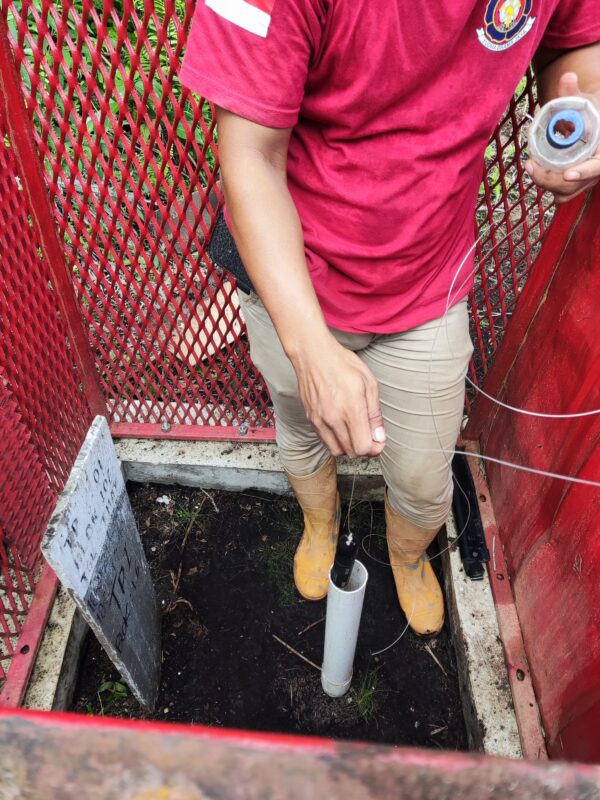 Setelah sensor terpasang, di lakukan penyegelan casing serta penyesuaian panjang kabel agar sesuai kedalaman. Di ruang kontrol, operator mengatur parameter logging melalui software khusus dan mencatat hasil verifikasi manual. Barometric logger juga di siapkan untuk kompensasi tekanan udara, memastikan akurasi data muka air. Kombinasi kerja lapangan dan validasi digital menjadikan instalasi ini bagian dari sistem pemantauan hidrologi yang terintegrasi.